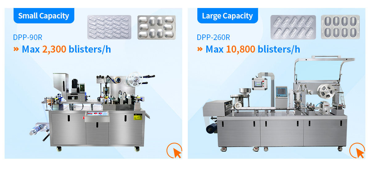 Also called Blister Packaging Machine,can automatically pack tablets, capsules, Liquid, sauces or others into blister plate or board.